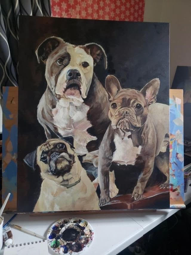I finish your painting! Nearby clients in Albany, New York can pick up their piece at my studio, or we can meet in-person. Otherwise, clients will have their pieces shipped out to them. Shipping price included in the overall total.